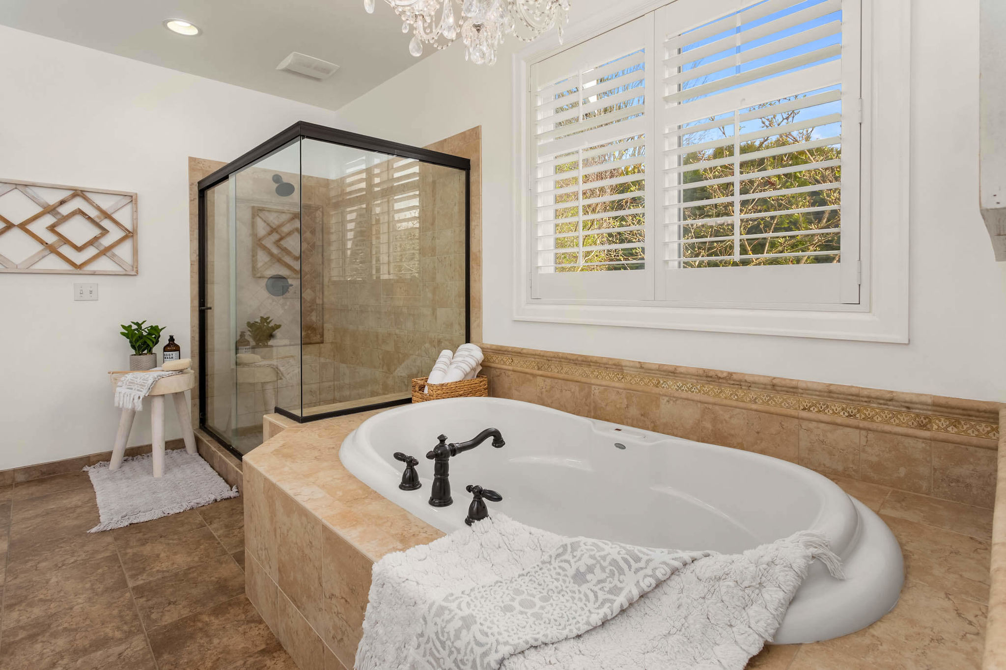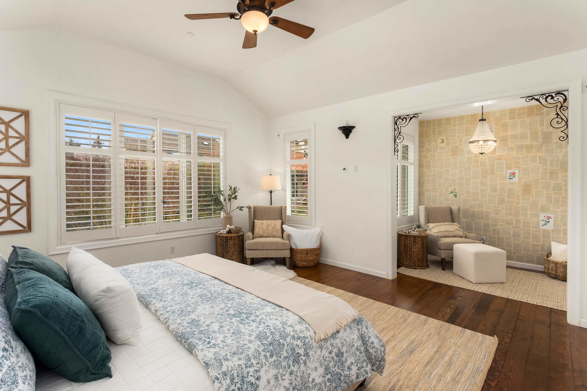 The enchantment of Fishtail Cottage is truly pronounced with an English Garden that could grace the pages of fairy tales. This magical retreat is adorned with a pondless waterfall, a shabby chic chicken coop, and a stunning covered patio with a wood burning stone fireplace and hearth. This Pinterest-worthy garden has been the highlight of notable garden tours and has amassed a large social media following for passionate green thumbs.